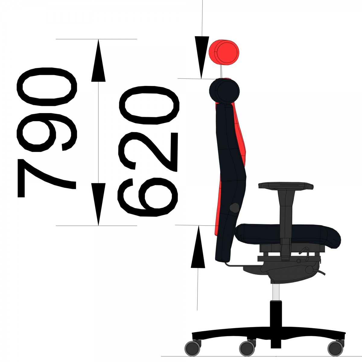 Die breite Rückenlehne ist gleich 7-fach höhenverstellbar und lässt sich in 5 Positionen arretieren.